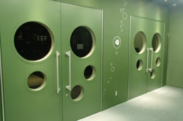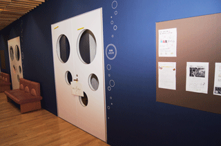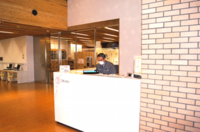 ここで受付簿に名前を記入いただくか、入退館カード(申し込みが必要です)を読み取り機にかざして下さい。