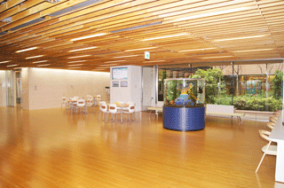 ここで受付簿に名前を記入いただくか、入退館カード(申し込みが必要です)を読み取り機にかざして下さい。