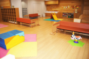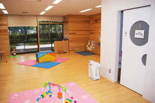 乳幼児と保護者がくつろぎながら他の親子とも交流ができる部屋です。すべり台やおもちゃ、絵本があり、授乳室も備えています。